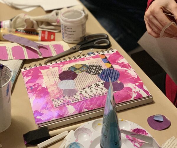 - Cut and paste different papers all over a page. When dry, use the pages as a background for your imagination.